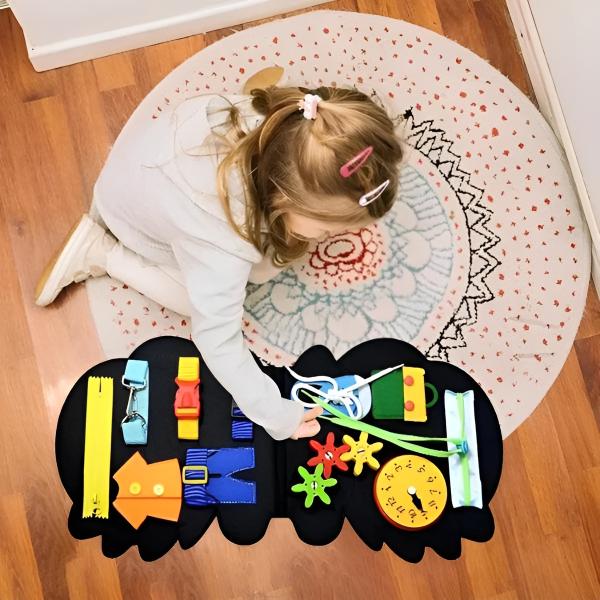 Το νήπιο θα ασχοληθεί με φερμουάρ, κούμπωμα, γρανάζια, ρολόγια, κορδόνια και πολλά άλλα.