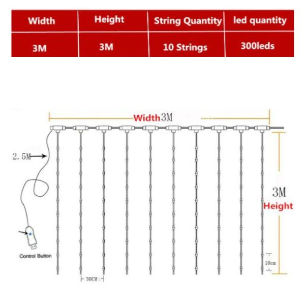 1 x Κουρτίνα LED CURLIGHT (3 x 3 m) με σύνδεση USB