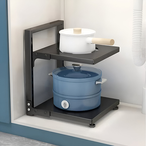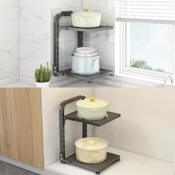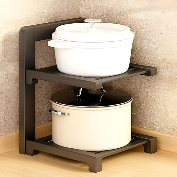 Οργανώστε την κουζίνα σας με ευκολία! Αυτή η βάση για κατσαρόλες με δύο ράφια είναι ιδανική για κάθε ντουλάπι και ιδανική λύση για μια τακτοποιημένη κουζίνα.