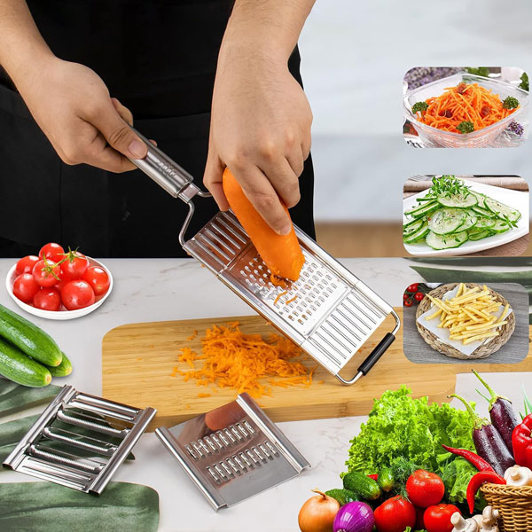 🧑‍🍳 Πολυλειτουργικός σχεδιασμός: Κόψτε, τρίψτε και ψιλοκόψτε με ένα εργαλείο—ιδανικό για σαλάτες, τηγανητές πατάτες και γρήγορα γεύματα.