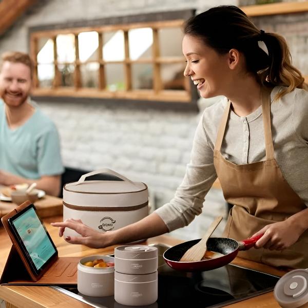 Απολαύστε ζεστά σπιτικά γεύματα όπου κι αν πάτε με αυτό το σετ δοχείων τροφίμων πολλαπλών στρώσεων.