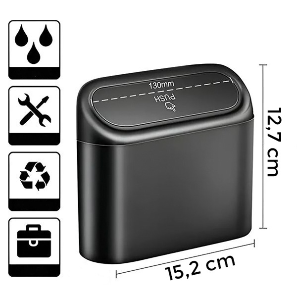 Αυτός ο συμπαγής κάδος απορριμμάτων διατηρεί το όχημά σας καθαρό και οργανωμένο χωρίς να καταλαμβάνει πολύ χώρο. Ο σχεδιασμός του προσφέρει άφθονη χωρητικότητα για τα καθημερινά απορρίμματα, καθιστώντας τον πρακτικό και διακριτικό.