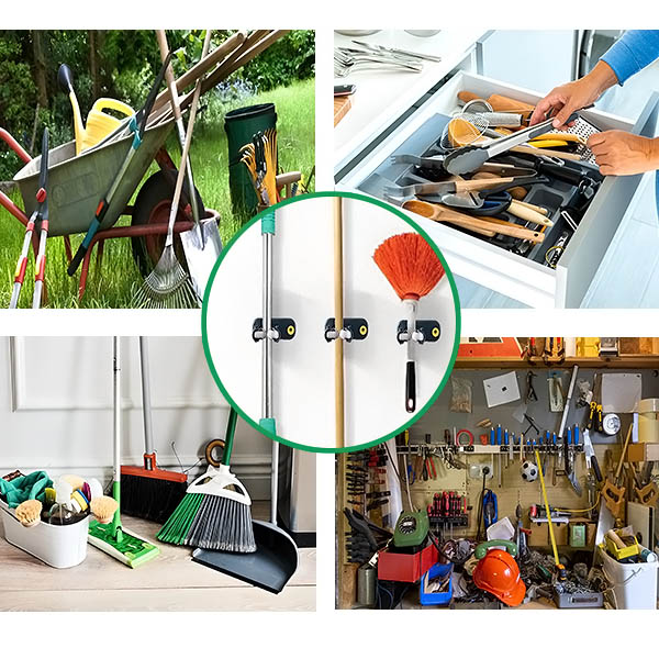 Αυτές οι βάσεις είναι ιδανικές όχι μόνο για σκούπες και σφουγγαρίστρες, αλλά και για εργαλεία κήπου, ομπρέλες ή ακόμα και στο γκαράζ για να διατηρείτε τον εξοπλισμό σας σε τάξη. Είτε κοντά στην είσοδο της πόρτας, είτε στο μπάνιο, στην κουζίνα ή έξω στον κήπο, αυτές οι θήκες θα βρουν τη θέση τους σε οποιοδήποτε σημείο του σπιτιού σας.