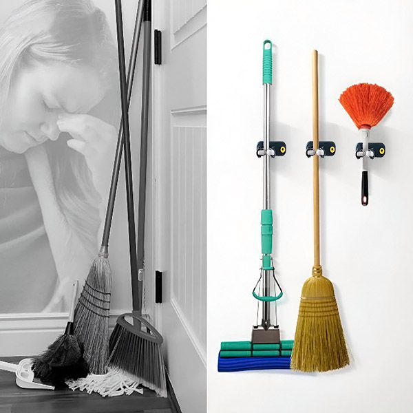 🧹 Διατηρήστε το χώρο σας τακτοποιημένο και οργανωμένο με το σετ των 3 ευέλικτων βάσεων! Ιδανικές για την οργάνωση σφουγγαρίστρων, σκουπών και άλλων ειδών στο σπίτι, το γκαράζ ή τον κήπο. 🚪🧺