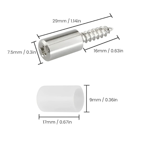 Διαστάσεις: Βίδα: 24 x 7 x 12 mm, Σιλικονούχο καπάκι: 15 x 9 mm